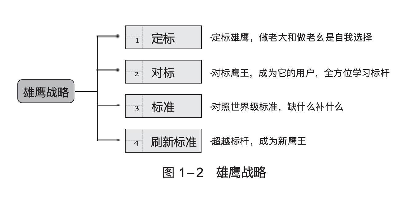 雄鹰不是体量, 而是标准。请注意,标准是质的变化,而非量的要求。这已然切中要害:战略的本质是标准。标准是真正的顶层设计,它会引领全局。