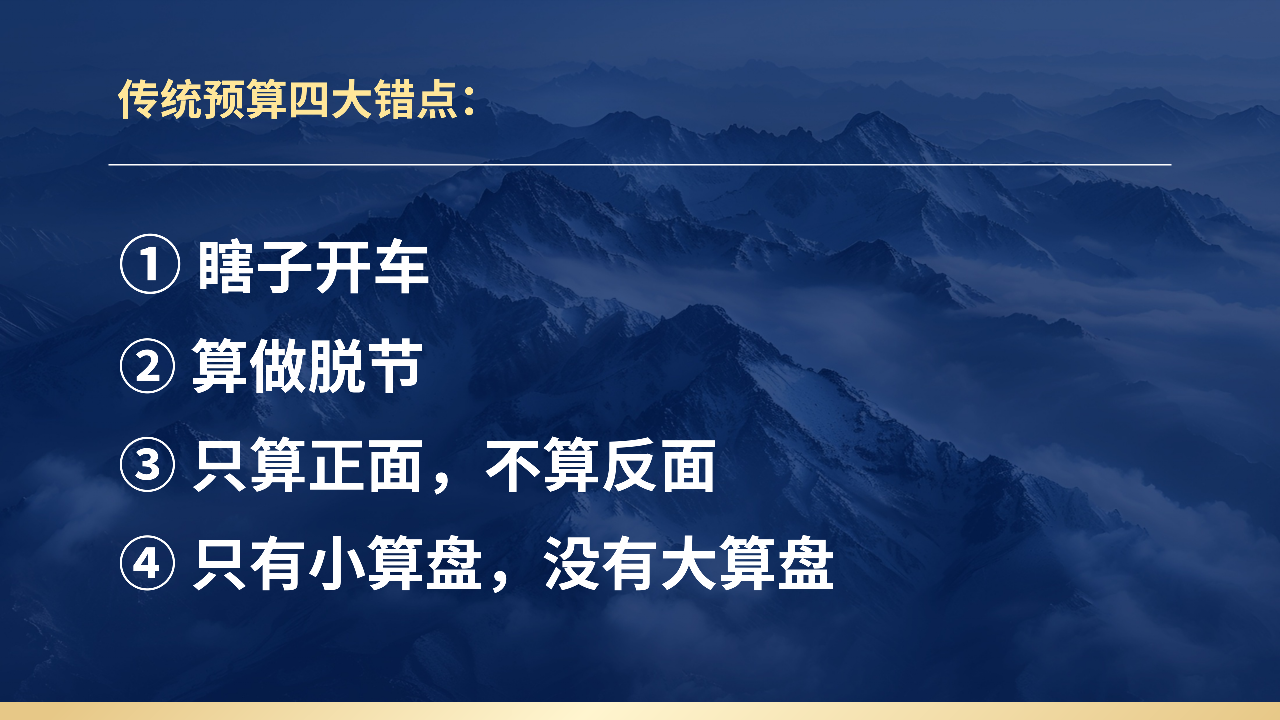 顶尖高手做预算,必须算三次,赢三次:先预(想赢)、后算(算赢)、再做(打赢),通过以下三套方法来实现: