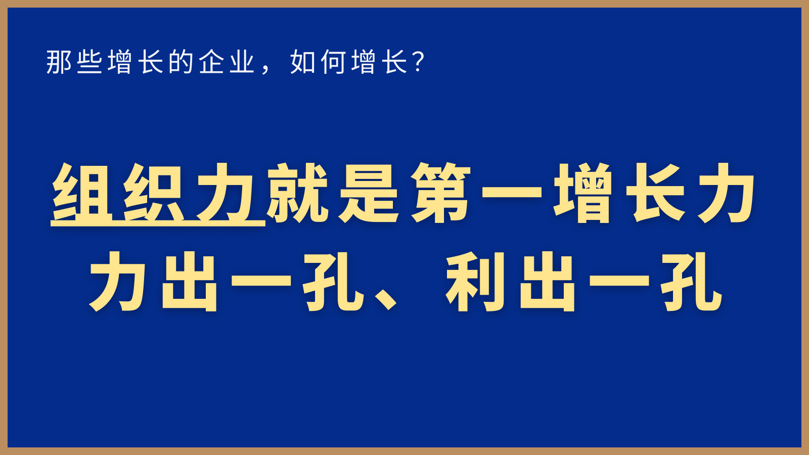 人的能量被激发,这是第一层的增长能力,但企业是系统作战,把人编到组织里,形成统一的组织力,才是企业增长的强大引擎。