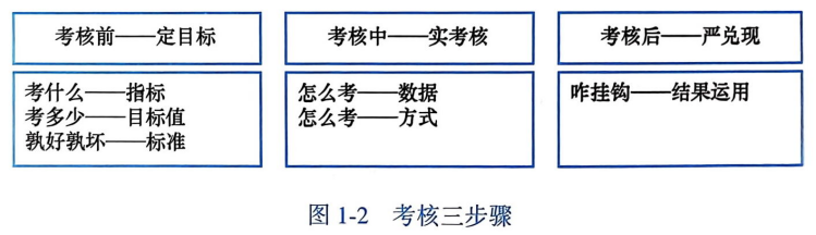 综合上述,不难发现,今天我们在企业经营管理中所运用的考核办法,依然没有脱离张居正变法所推行的“定目标,实考核,严兑现”的范畴(见图1-2)。