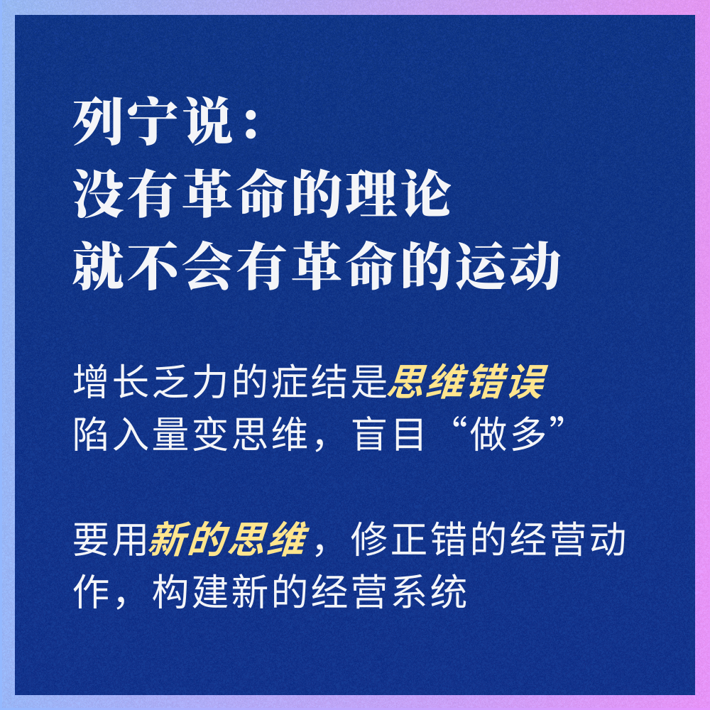 而改变思维的关键,在于找到科学的理论指引。列宁在《怎么办》中曾深刻指出:“没有革命的理论,就不会有革命的运动。”这一论断同样适用于企业经营——当下企业增长乏力的核心症结,就是因为陷入了“量变思维”的误区。