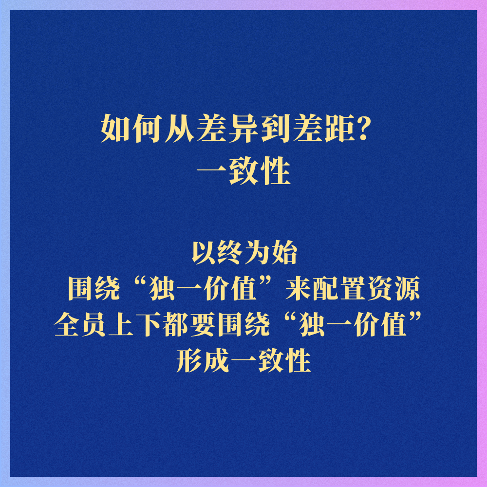 过去我们总强调差异化,其实差异化根本不够,你必须要拉开差距。企业的竞争不是差异化竞争,而是差距化竞争。只有当用户感知到你的价值满足了他的需求,并且你与对手拉开了差距时,这个价值才能真正变成你的独一无二的价值。