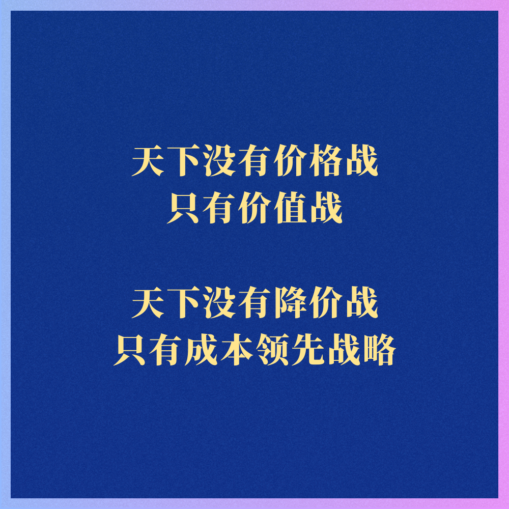天下没有降价战,只有成本领先战略。成本领先战略不是降价,而是通过成本设计将总成本降低,在保证品质的前提下,为用户提供具有极致性价比的产品。