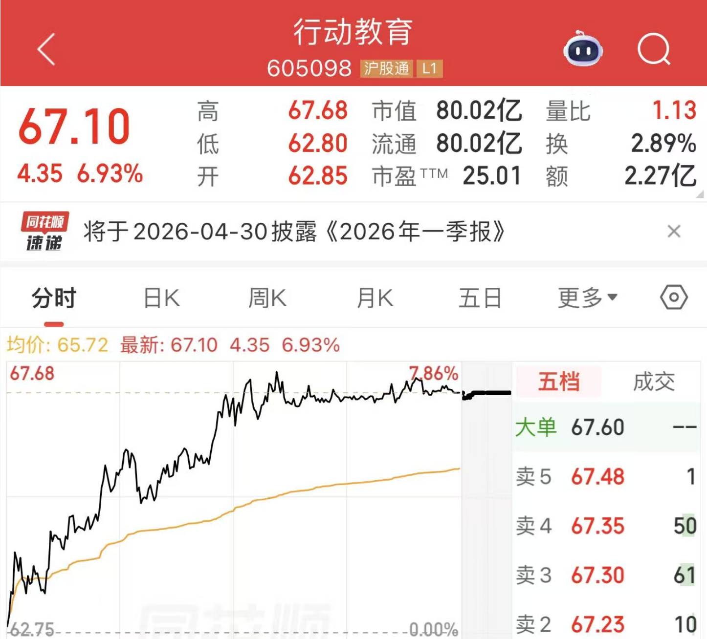 行动教育股价、市值创新高