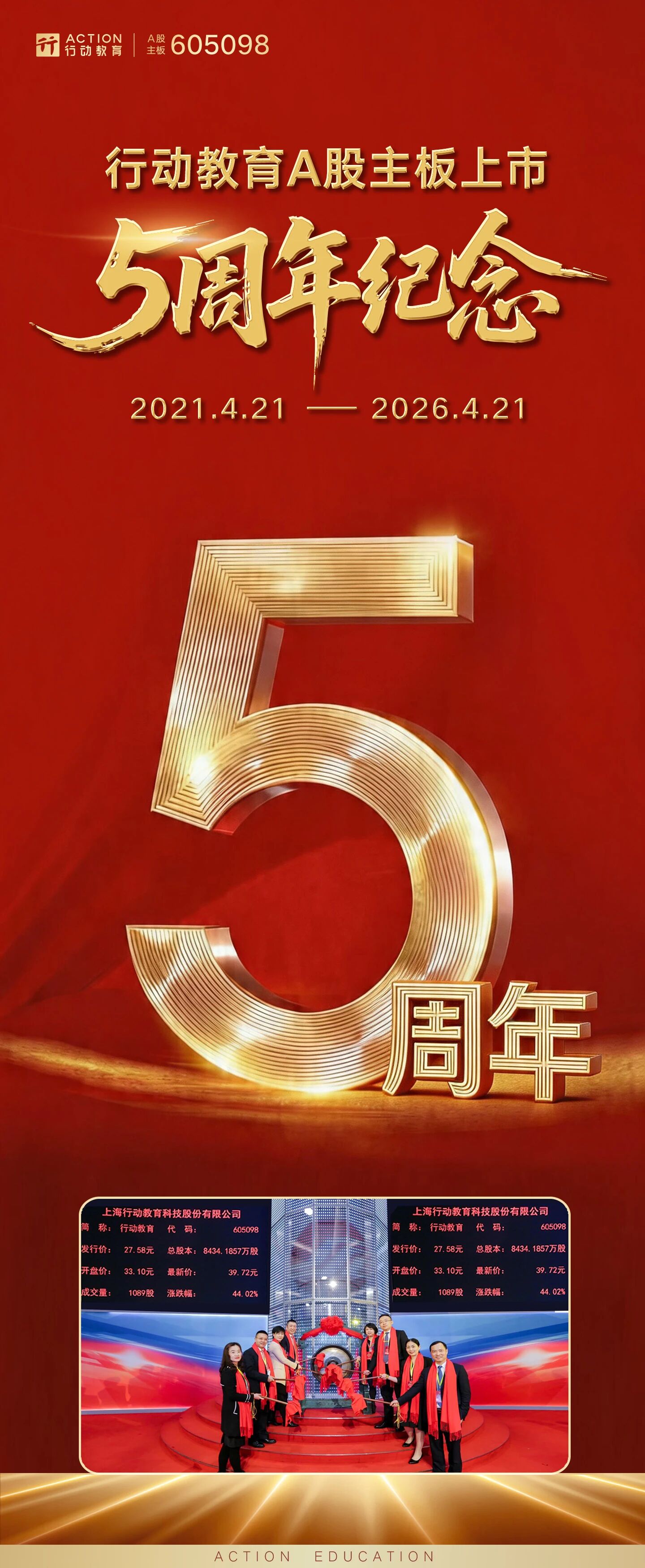 2026年4月21日,距离行动教育在上交所敲响“中国管理教育主板上市第一股”的钟声,正好5年。