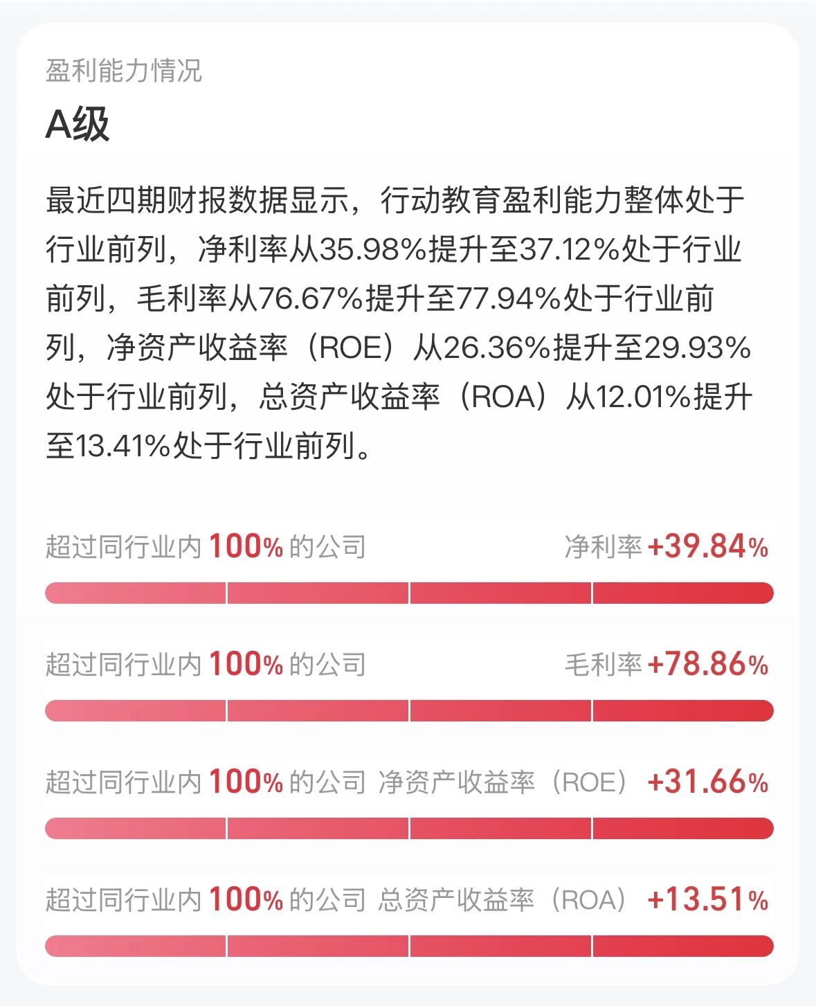 盈利能力处于行业前列